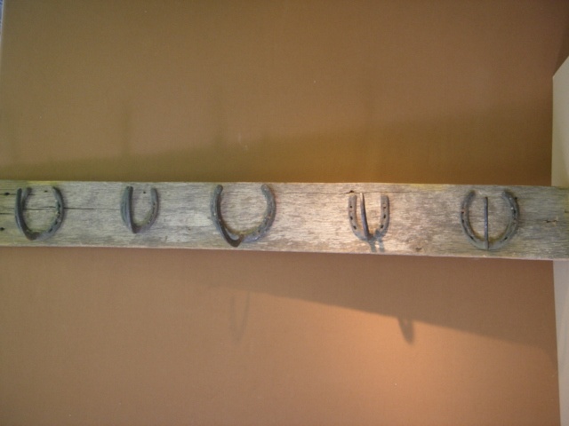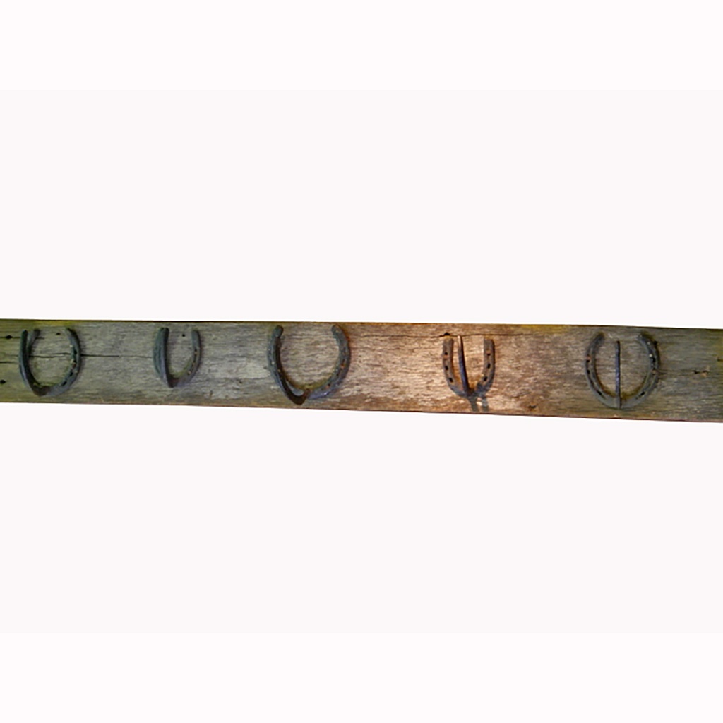 WALL HANGING AMERICAN HORSESHOE COAT RACK ON WOODEN BACK BOARD 108 CM WIDE (X3)