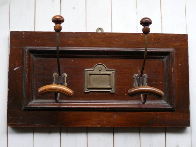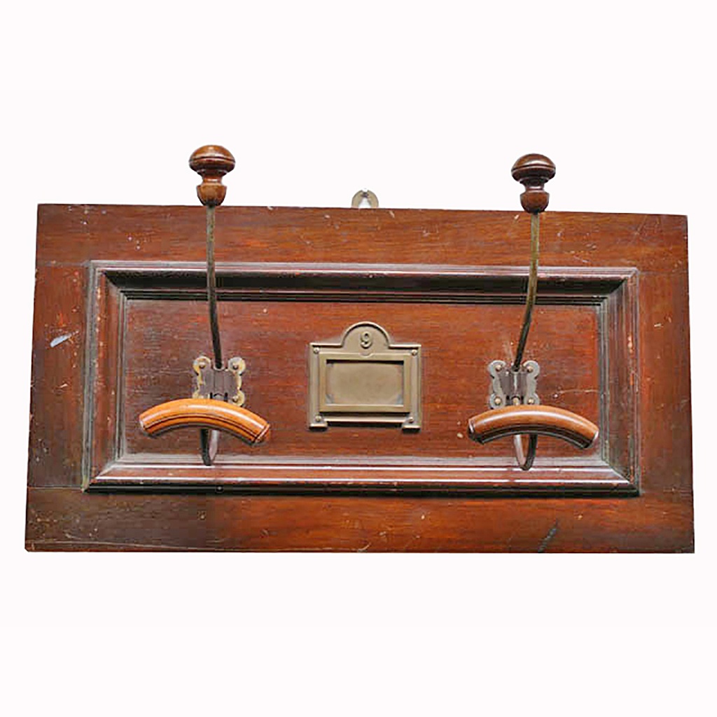 WALL HANGING DOUBLE COAT HOOK ON MAHOGANY BACK BOARD (X4)