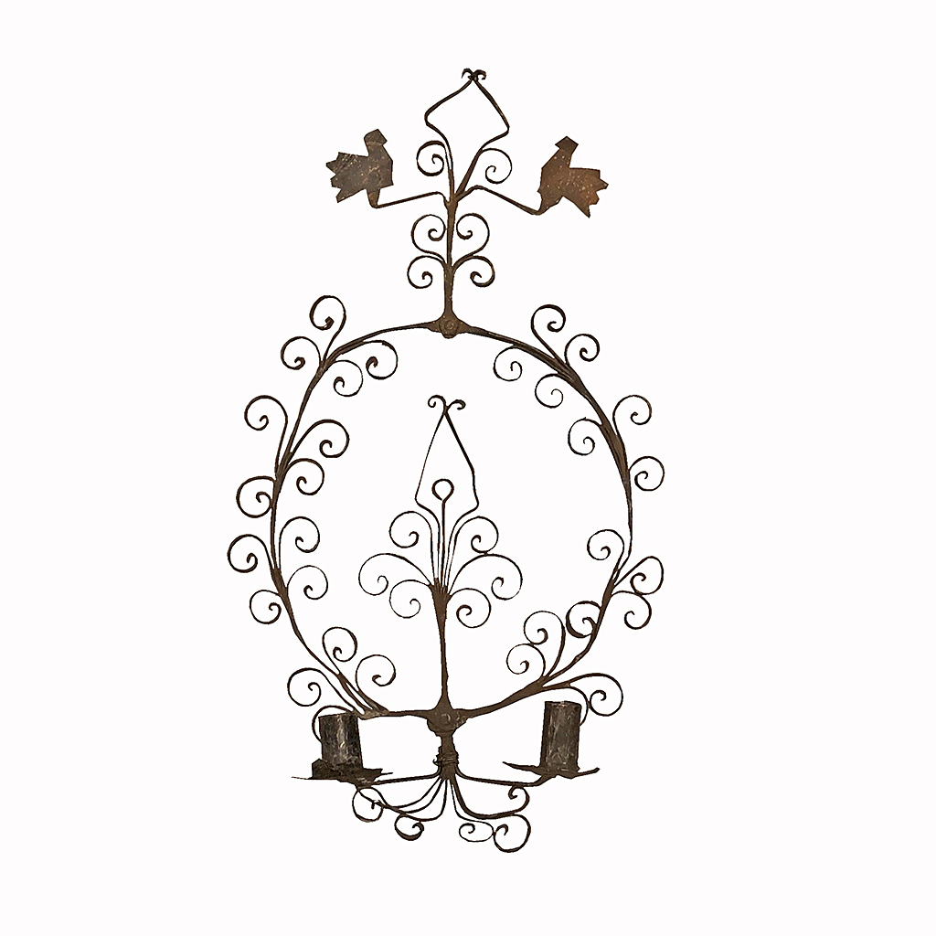 WALL LIGHT / SCONCE EARLY SPANISH FINE WROUGHT IRON TWO LIGHT WITH BIRD TOP