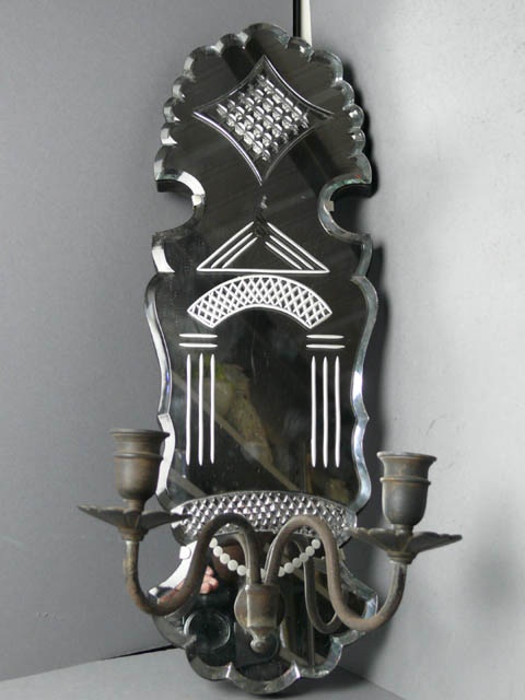 WALL LIGHT / SCONCE ENGRAVED MIRROR BACK WITH TWO BRANCH CANDLE HOLDER 52 CM HIGH (X3)