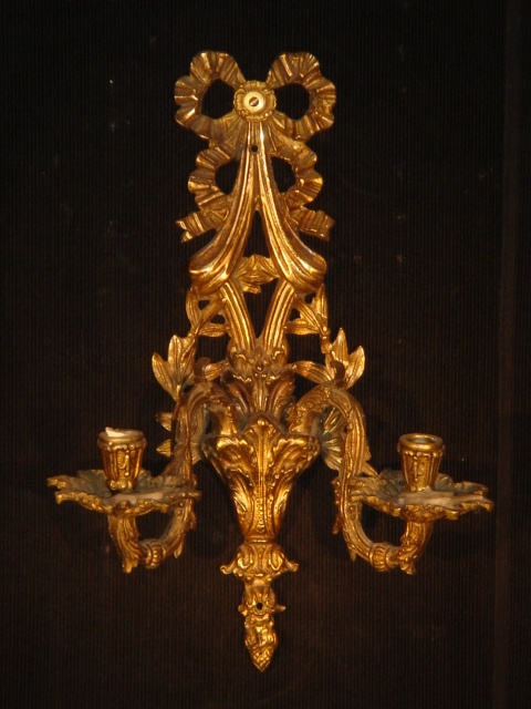 WALL LIGHT / SCONCE GILT METAL RIBBON PATTERN TWO BRANCH (X6)