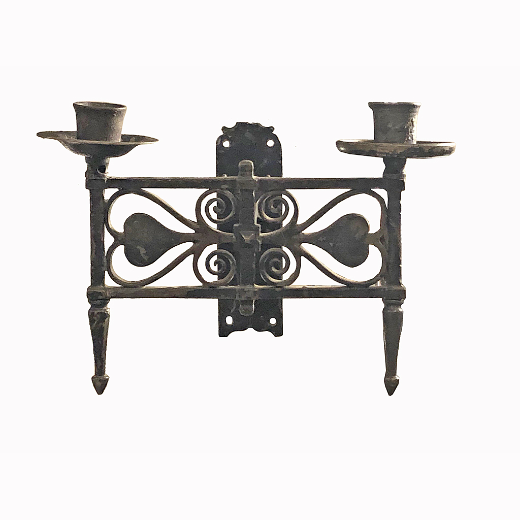 WALL LIGHT / SCONCE LARGE SIMPLE WROUGHT IRON TWO BRANCH CANDLE HOLDERS (X2)