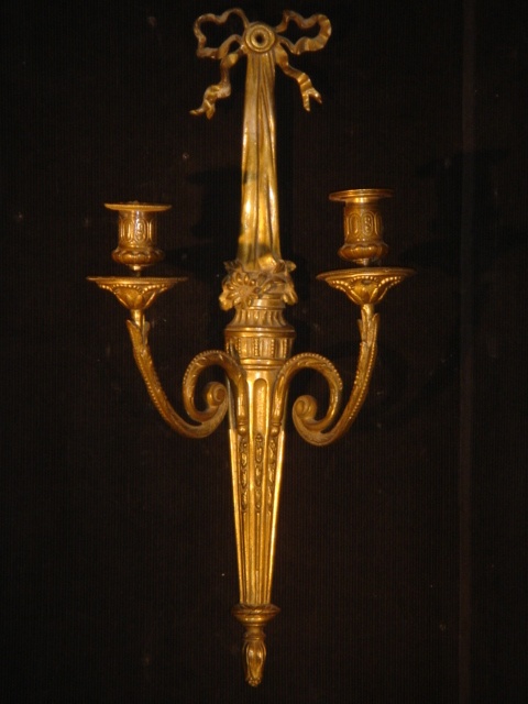 WALL LIGHT / SCONCE MEDIUM TWO BRANCH GILT METAL WITH RIBBON TOP 52 CM HIGH 27 CM WIDE (X4)
