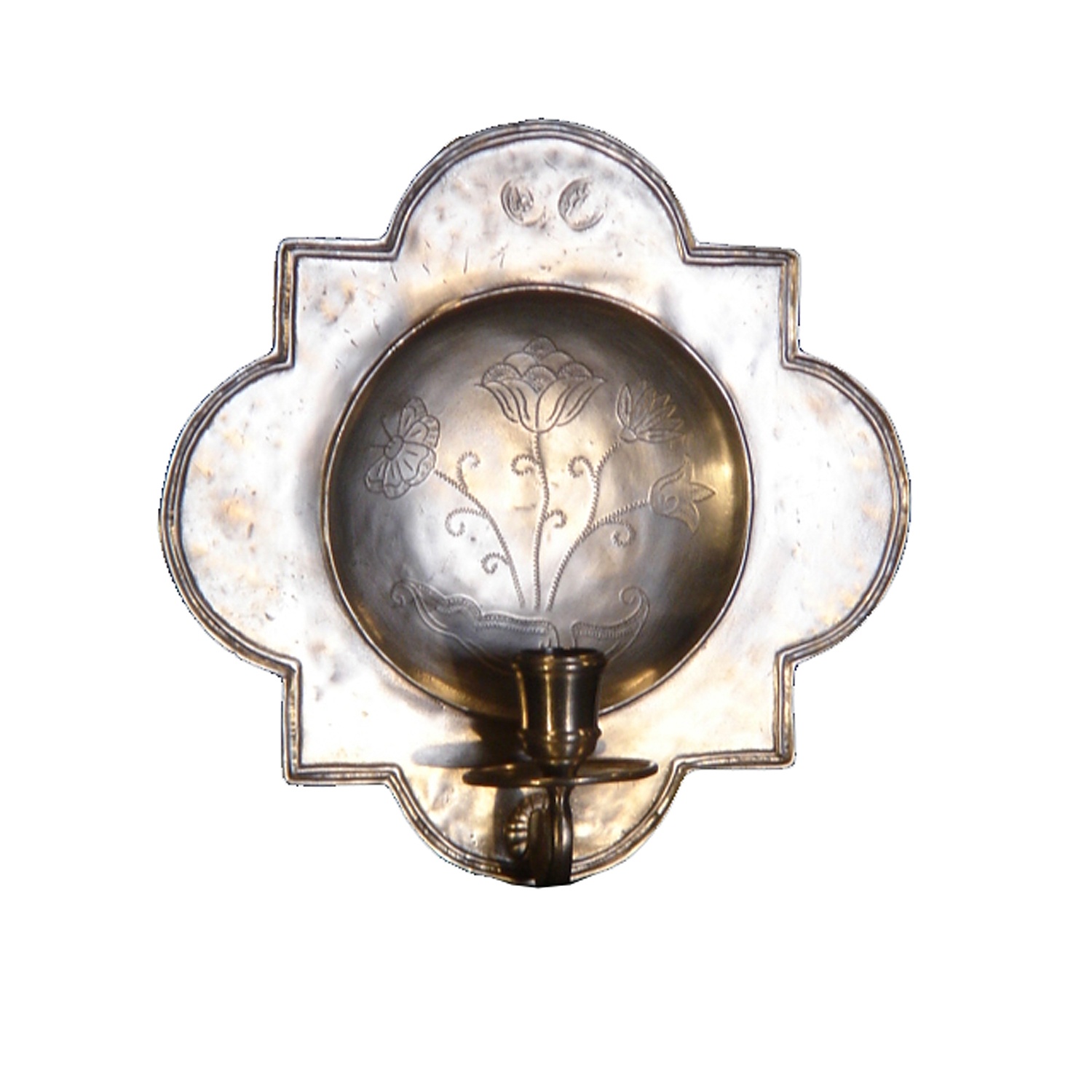 WALL LIGHT / SCONCE QUEEN ANNE STYLE ENGRAVED PEWTER SINGLE CANDLE HOLDER (X6)