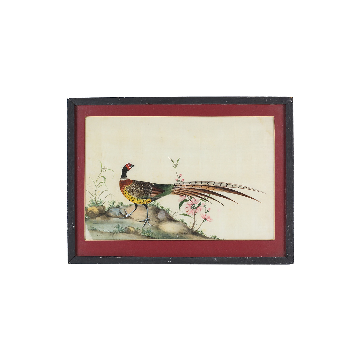 WATERCOLOUR 7/i X 10/i CHINESE BIRD ON RICE PAPER IN BLACK FRAME