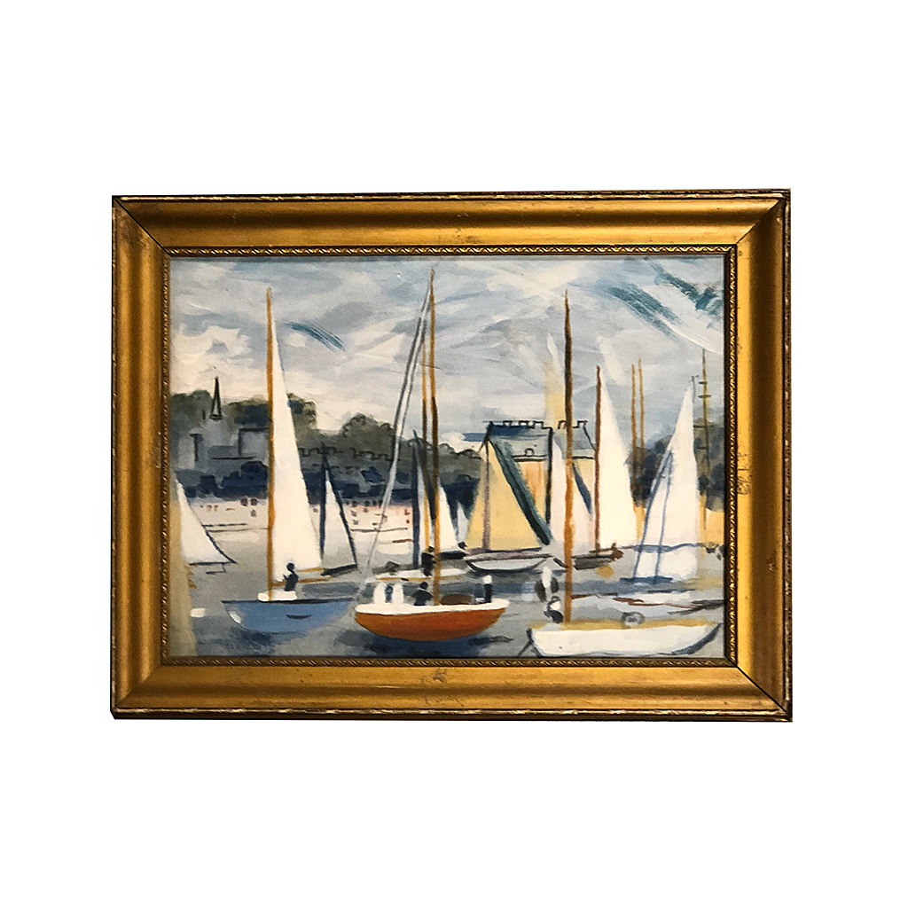 WATERCOLOUR 9" X 12" ON PRINT YACHTS IN A GILT FRAME