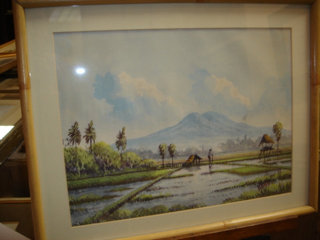 WATERCOLOUR 9/i X 12/i PADDY FIELDS IN A BAMBOO FRAME