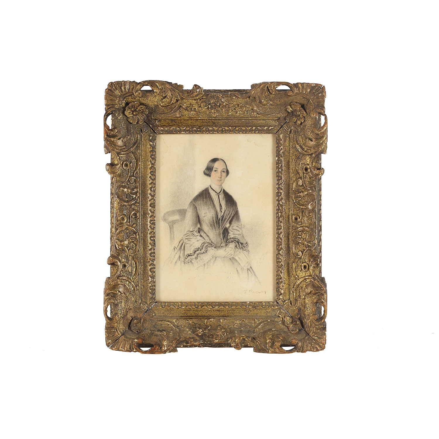 WATERCOLOUR 9/i X 6/i PORTRAIT OF A VICTORIAN LADY IN A CARVED GILT FRAME