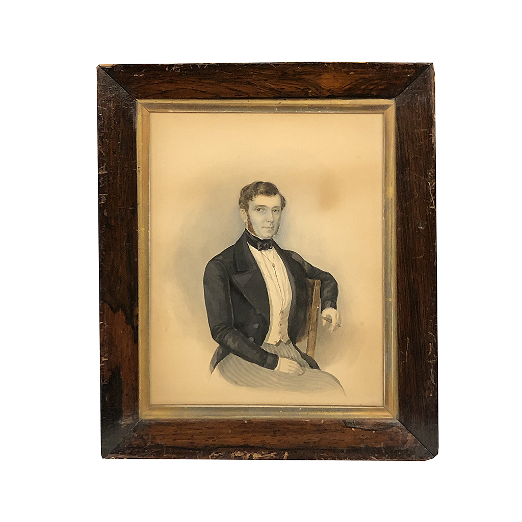 WATERCOLOUR 9" X 7" PORTRAIT OF A VICTORIAN GENTLEMAN IN MAPLE FRAME