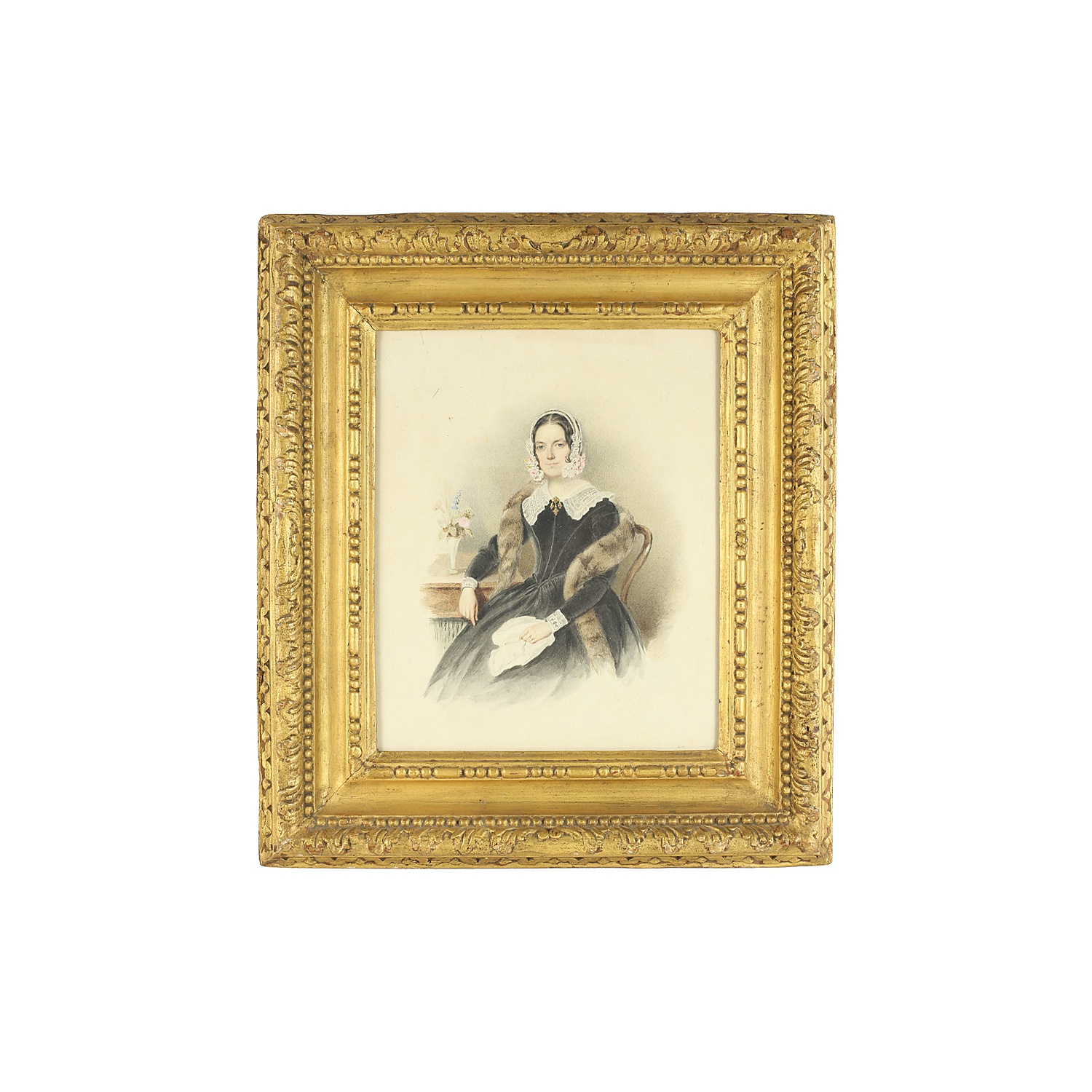 WATERCOLOUR 9/i X 8/i PORTRAIT OF A VICTORIAN LADY IN CARVED GILT FRAME