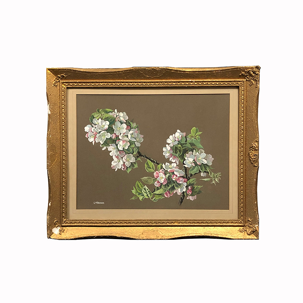 WATERCOLOUR CHERRY BLOSSOM IN A SWEPT GILT FRAME 17/i X 22/i