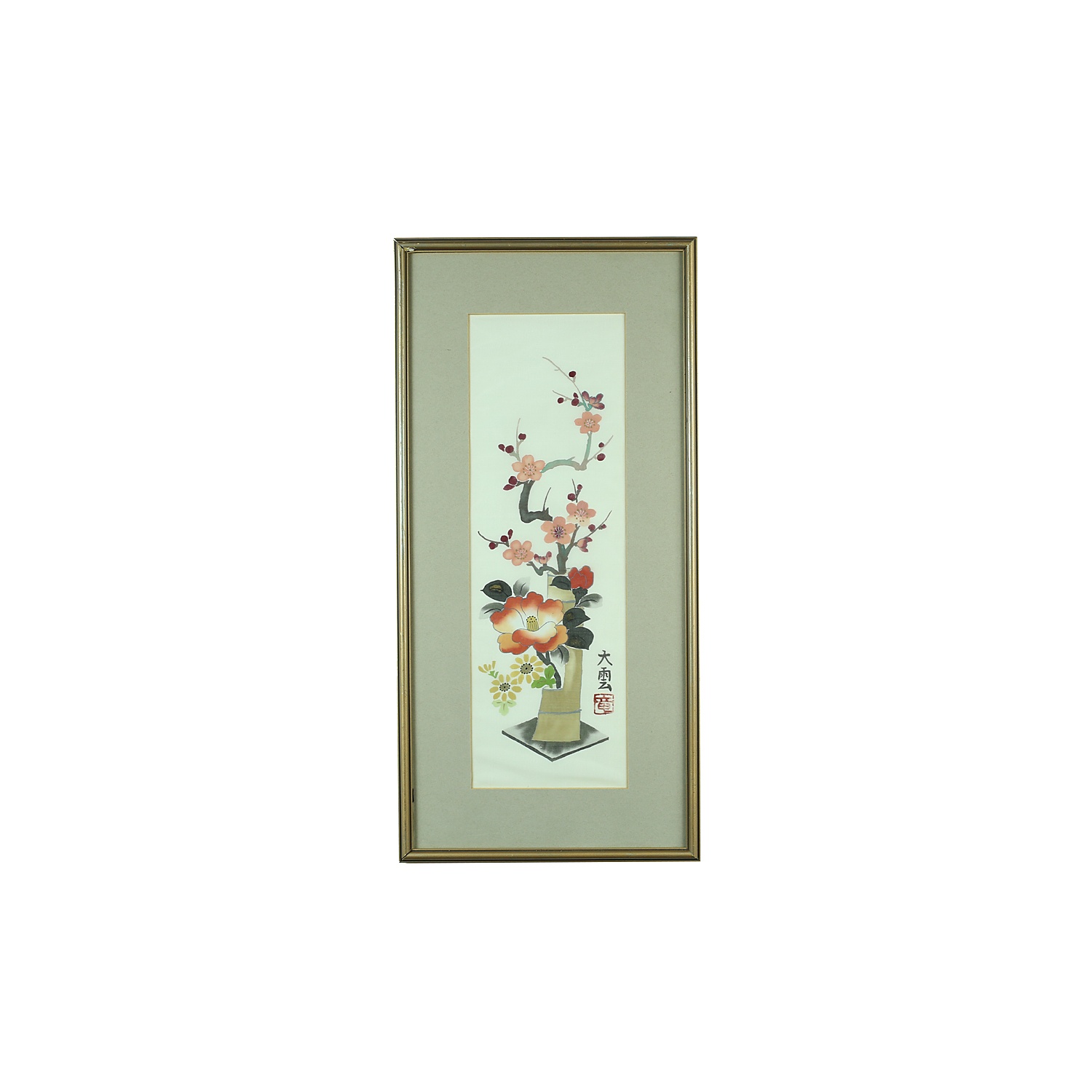 WATERCOLOUR CHINESE FLOWERS IN A GILT FRAME 13/i X 4/i