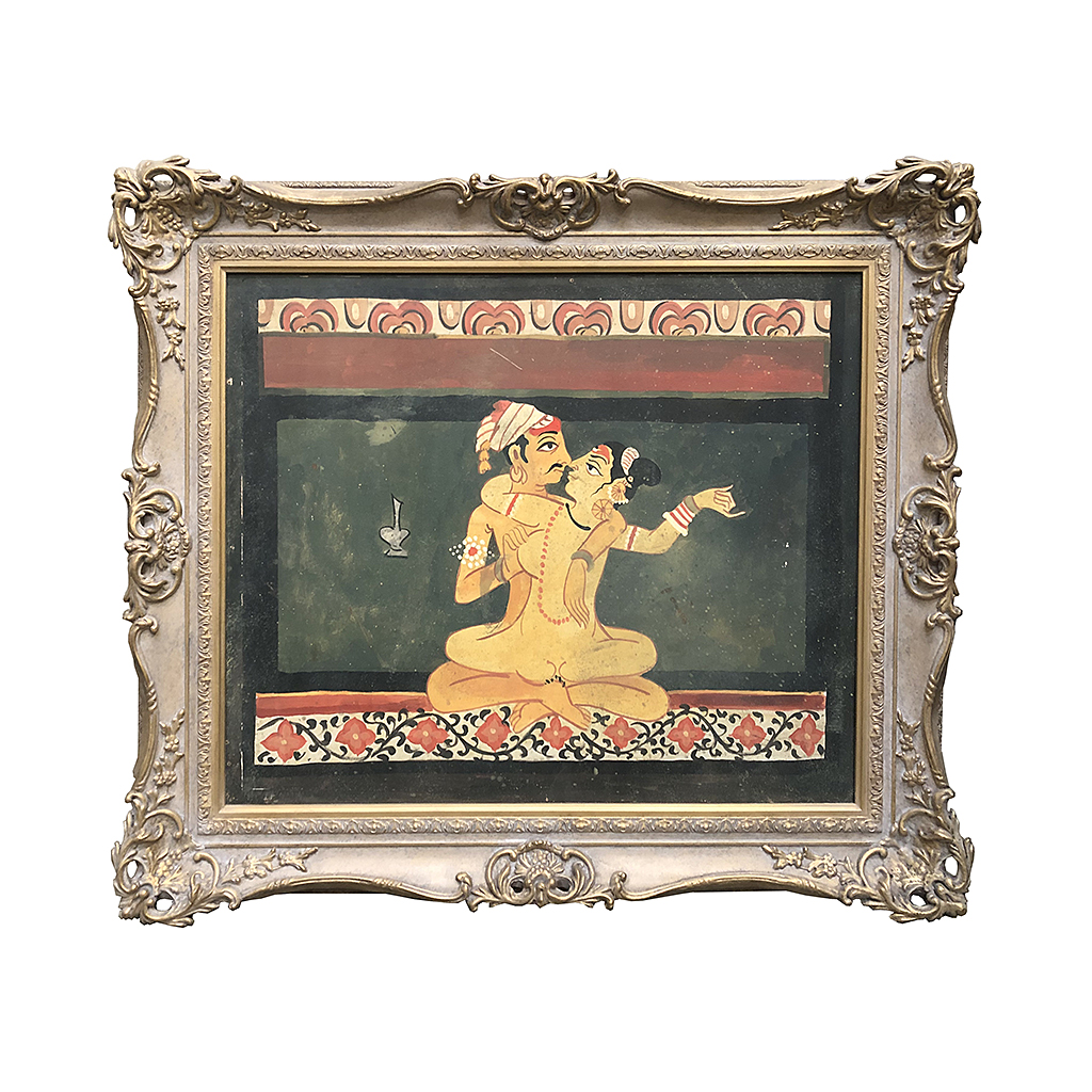 WATERCOLOUR ILLUSTRATION FROM THE KAMA SUTRA IN A ORNATE GILT FRAME 23" X 28"