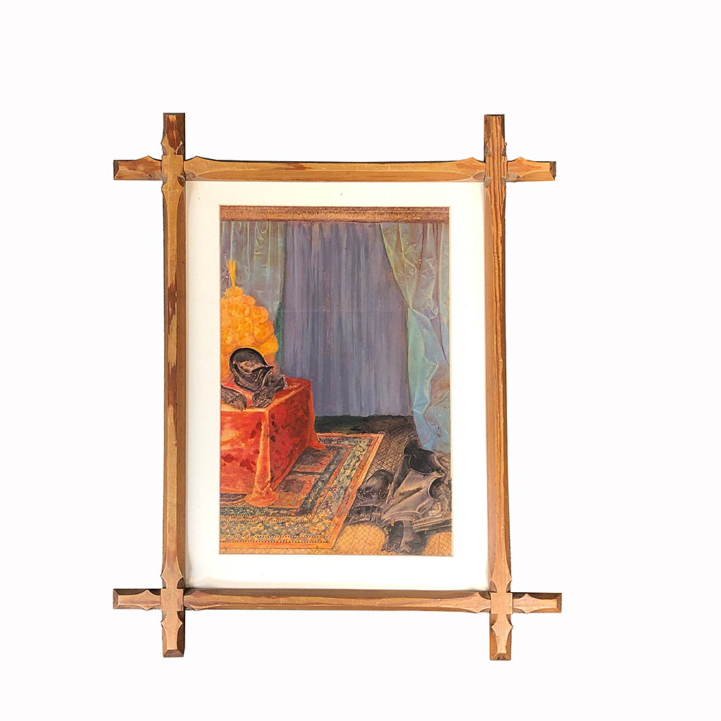 WATERCOLOUR OF AN INTERIOR WITH A SUIT OF ARMOUR IN A PINE OXFORD FRAME 18/i X 13/i