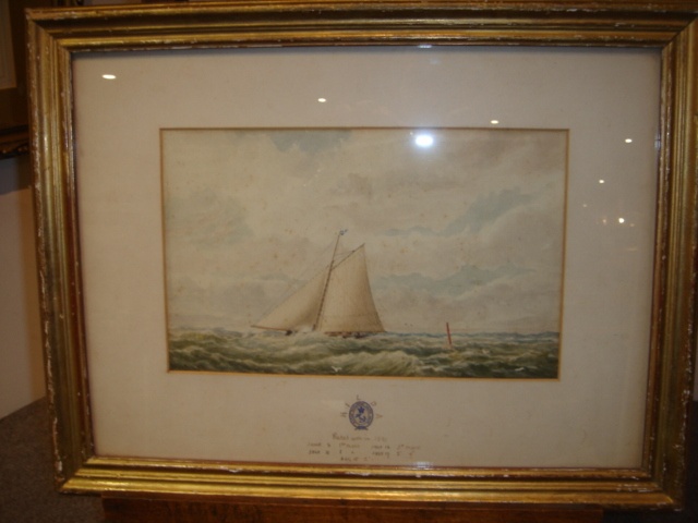WATERCOLOUR OF THE RACING YACHT /iHILDA/i 1891 IN A GILT FRAME 10/i X 14/i