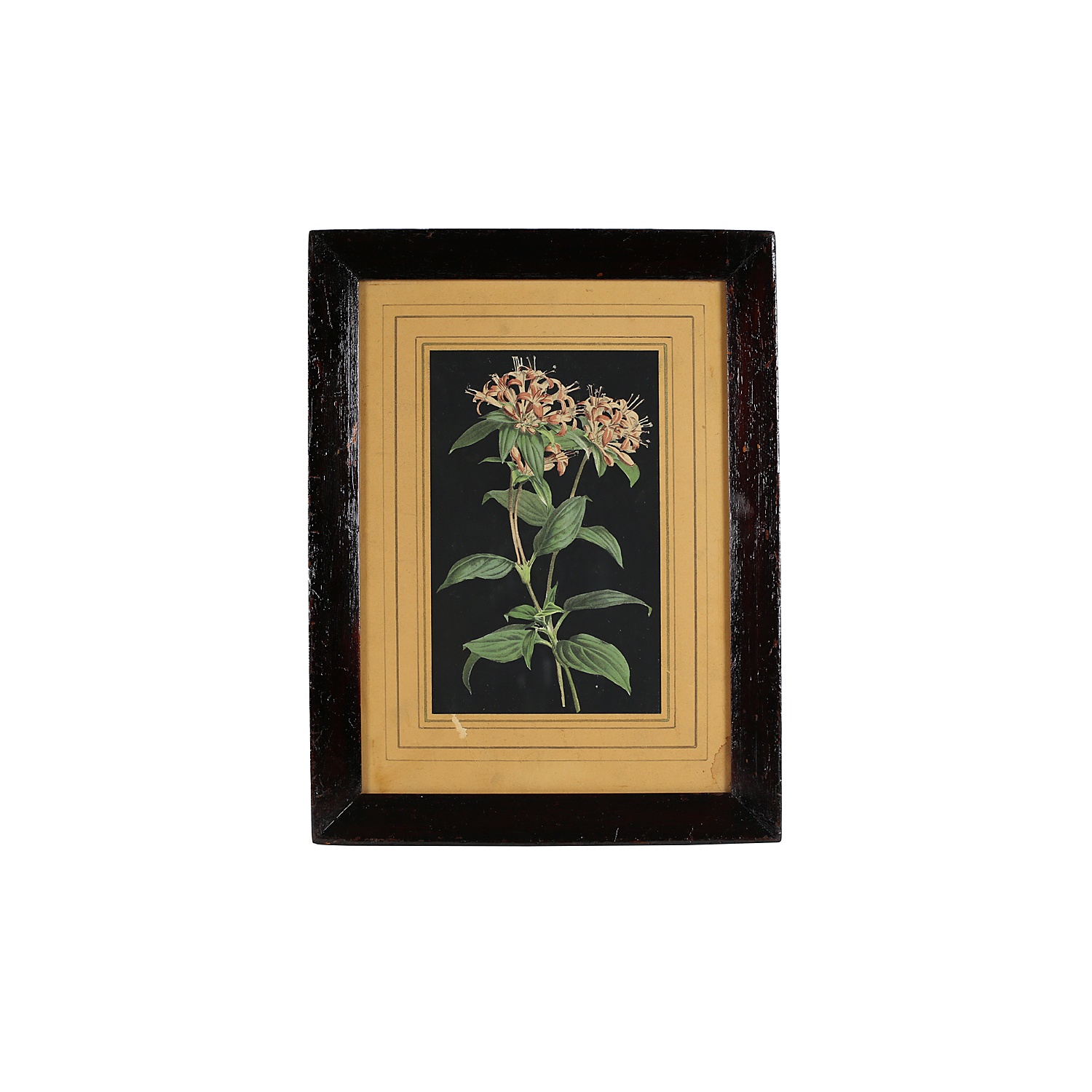 WATERCOLOUR ON A BLACK BACKGROUND FLOWERS IN A DARK OAK FRAME 12/i X 9/i