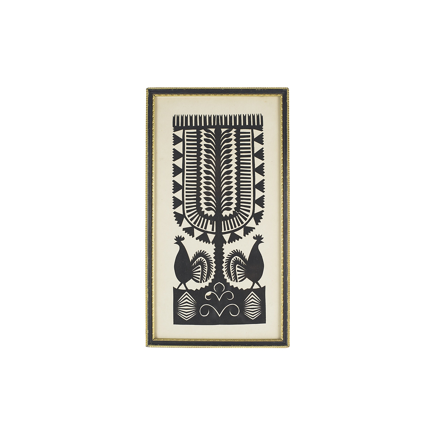 WATERCOLOUR SILHOUETTE 12/i X 6/i COCKS IN A BLACK AND GILT FRAME