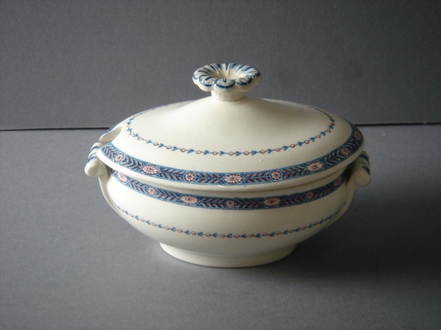 WEDGWOOD BOSTON SMALL SAUCE TUREEN AND LID BLUE RED BORDER