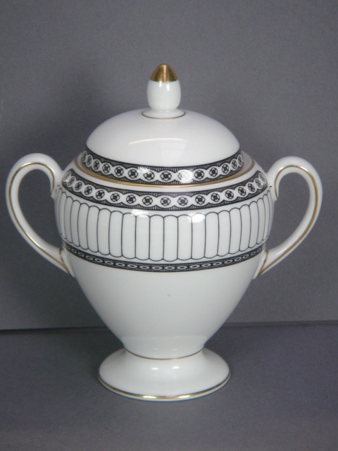 WEDGWOOD COLONNADE SUGAR BOX AND LID WITH TWIN HANDLES BLACK AND WHITE (X2)