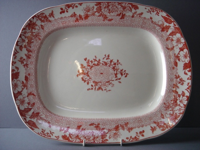 WEDGWOOD ETRURIA LARGE PLATTER RUST RED FLORAL PATT. 42 CM