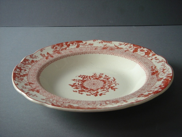WEDGWOOD ETRURIA SOUP PLATE RUST RED FLORAL PATT. 26 CM (X8)
