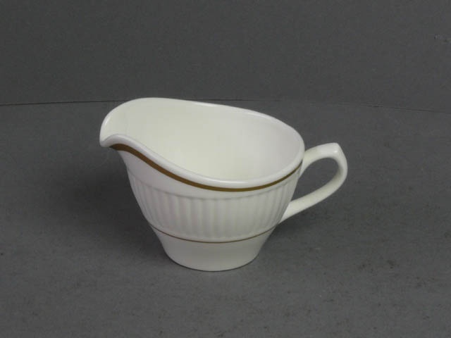 WEDGWOOD INSIGNIA CREAM JUG FLUTED WHITE CHINA WITH A GOLD RIM