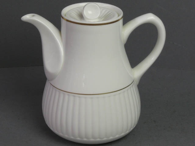WEDGWOOD INSIGNIA LARGE COFFEE POT AND LID FLUTED WHITE CHINA WITH A GOLD RIM (X2)