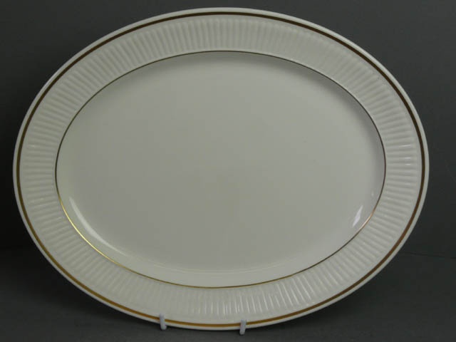 WEDGWOOD INSIGNIA LARGE OVAL PLATTER FLUTED WHITE CHINA WITH GOLD RIM 36 CM