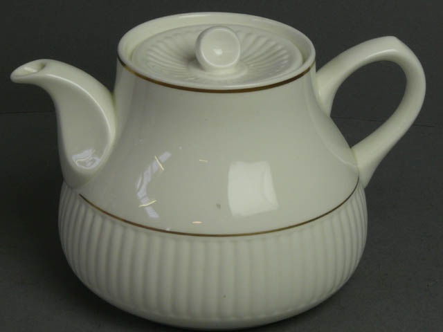 WEDGWOOD INSIGNIA LARGE TEA POT AND LID FLUTED WHITE CHINA WITH GOLD RIM (X2)