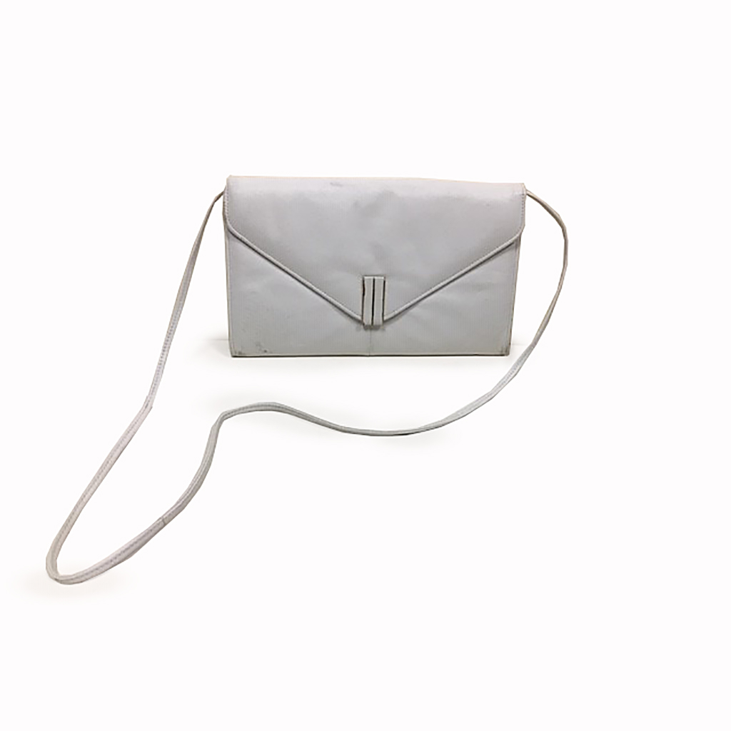 WHITE 1980S LEATHER ENVELOPE STYLE HAND BAG WITH LONG STRAP