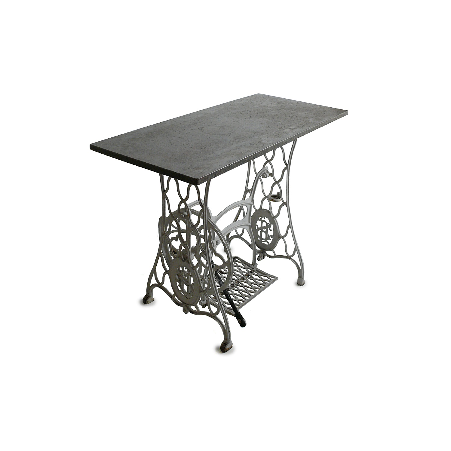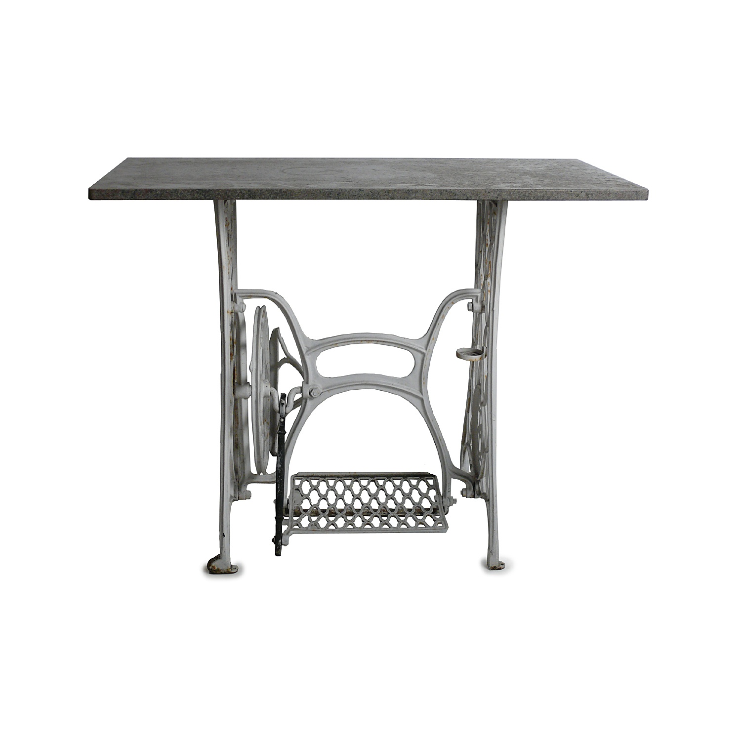 WHITE CAST IRON SEWING TABLE WITH A GREY GRANITE MARBLE TOP