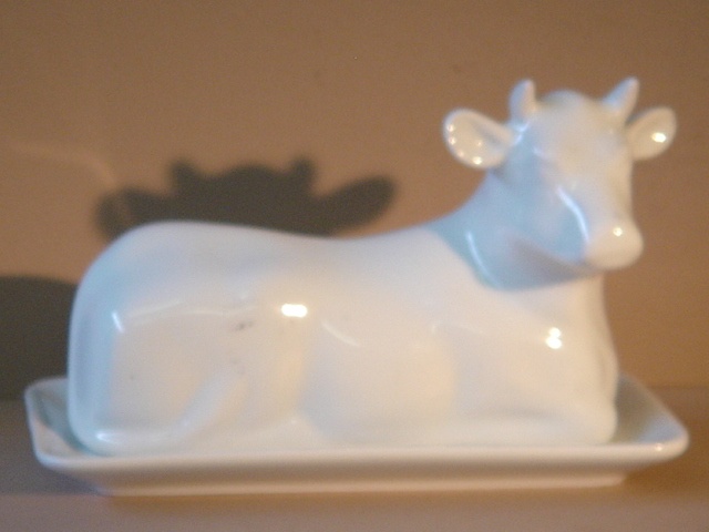 WHITE CHINA BUTTER DISH IN THE FORM OF A COW