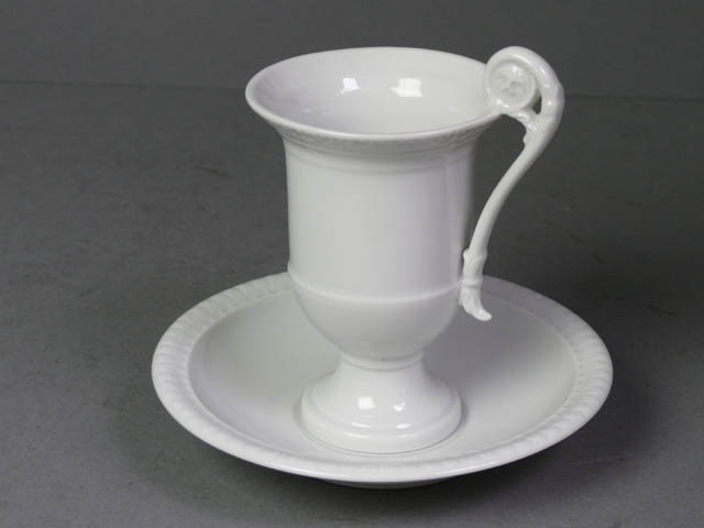 WHITE CHINA CONTINENTAL CHOCOLATE / TALL COFFEE CUP AND SAUCER (X4)