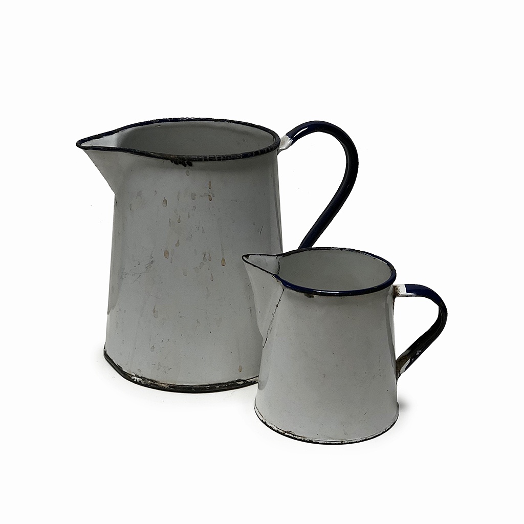 WHITE ENAMEL JUG 11 CM - 18 CM HIGH (X2)