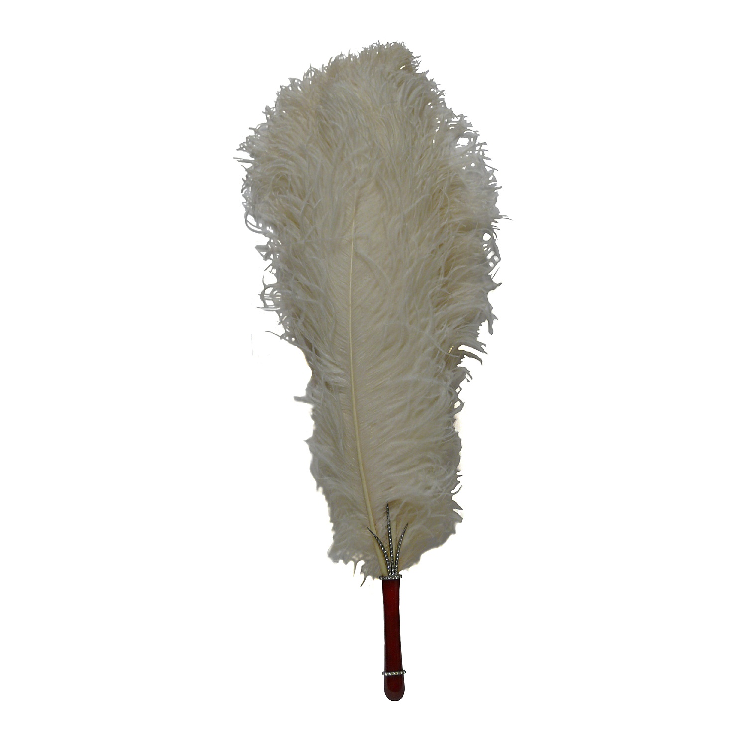 WHITE OSTRICH FAN WITH RED BAKELITE AND DIAMANTE HANDLE (WITH BOX)