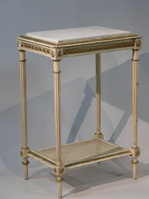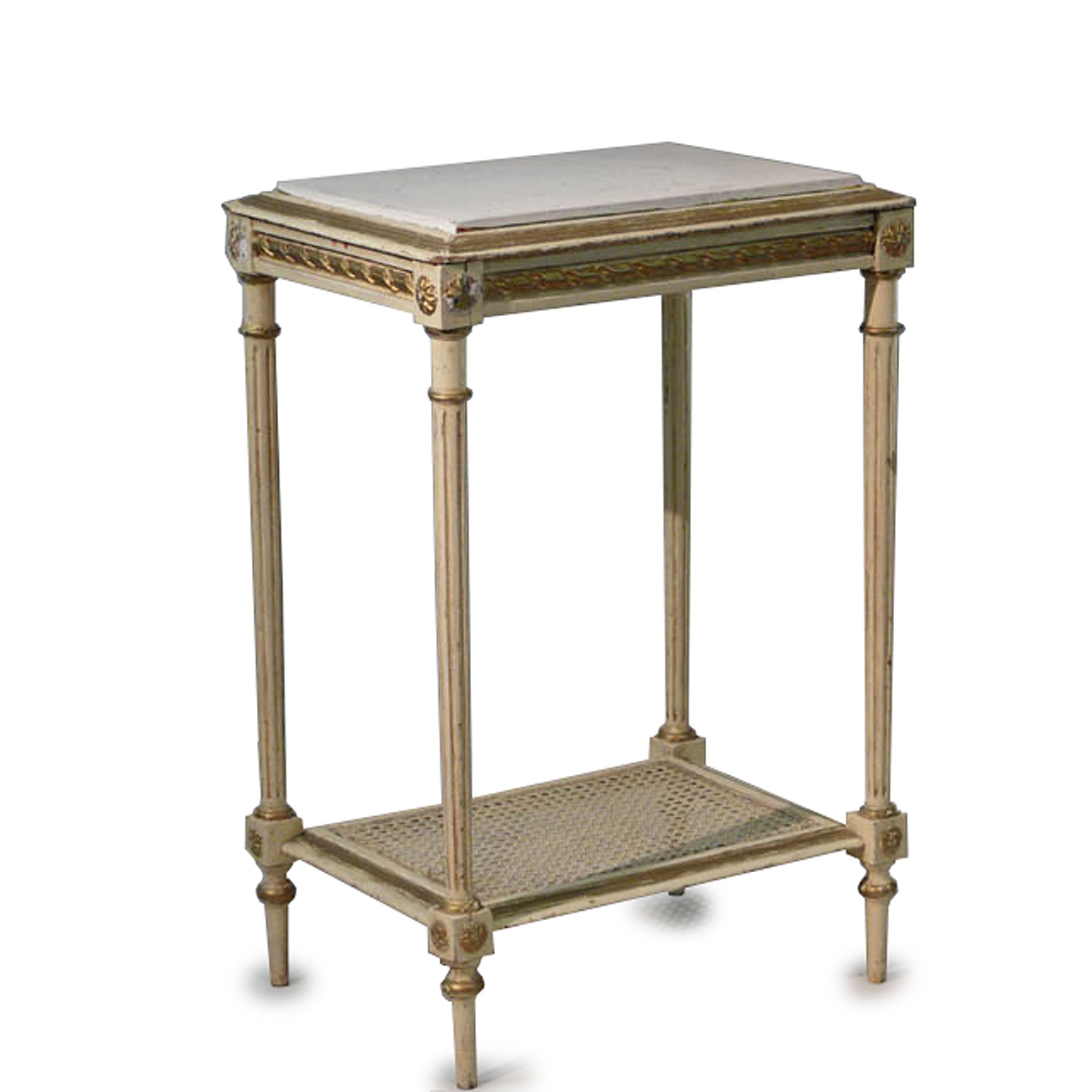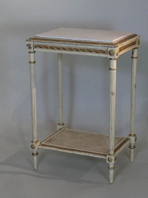 WHITE PAINTED FRENCH TWO TIER OCCASIONAL TABLE WITH A PAINTED WHITE TOP 18/i WIDE 73 CM HIGH X 49 CM WIDE X 37 CM DEEP