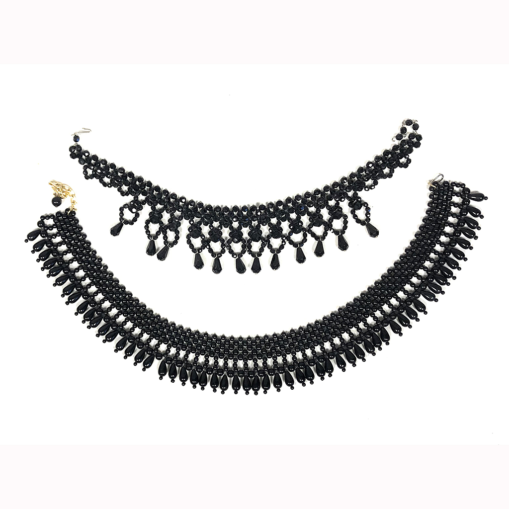WIDE JET COLLAR / NECKLACE TASSEL DESIGN
