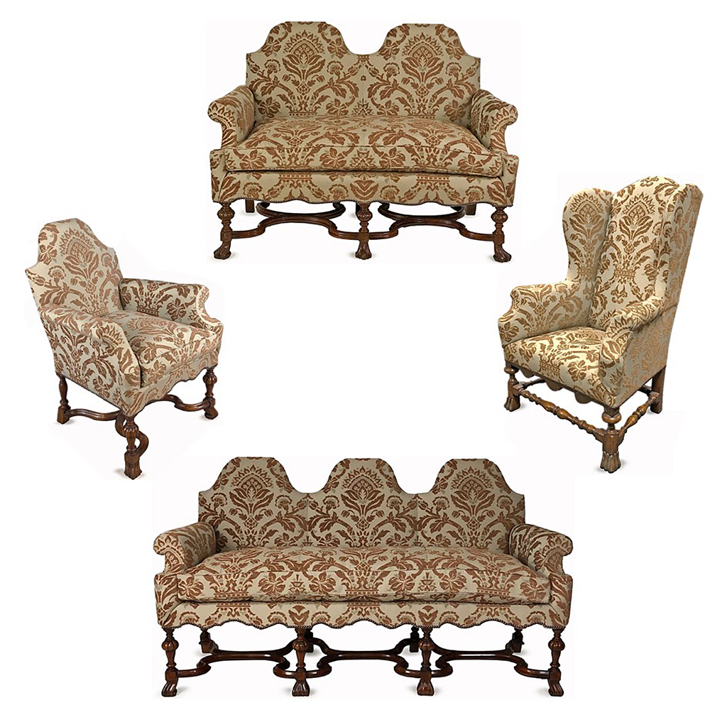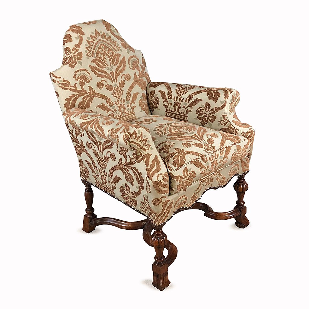 WILLIAM AND MARY ARCH BACK ARM CHAIR BROWN FLORAL BROCADE UPHOLSTERY 100 CM HIGH 70 WIDE 81 DEEP