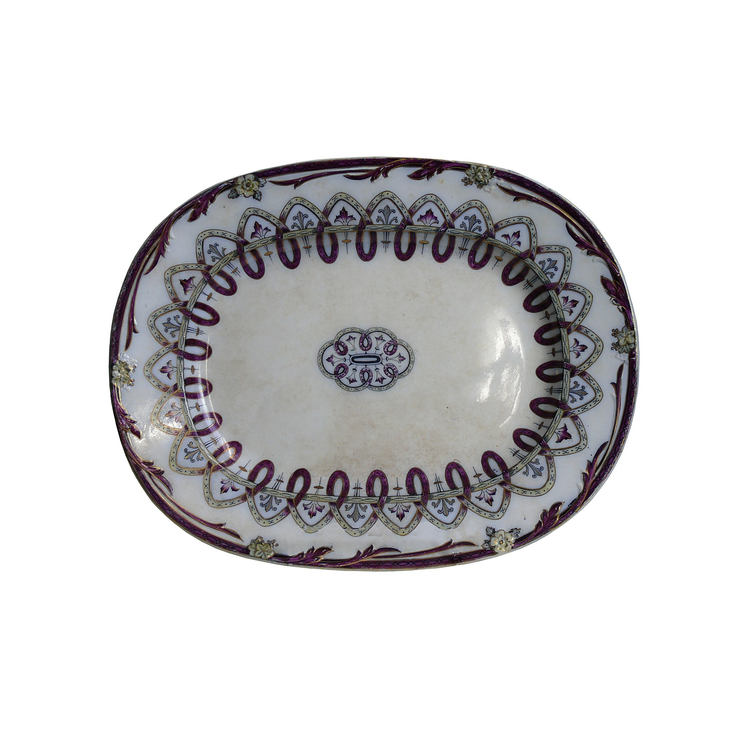 WILLIAM BROWNFIELD AZOFF PURPLE FLOW CHINA LARGE OVAL PLATTER WITH FOLIATE EDGE 46 CM LONG C1854