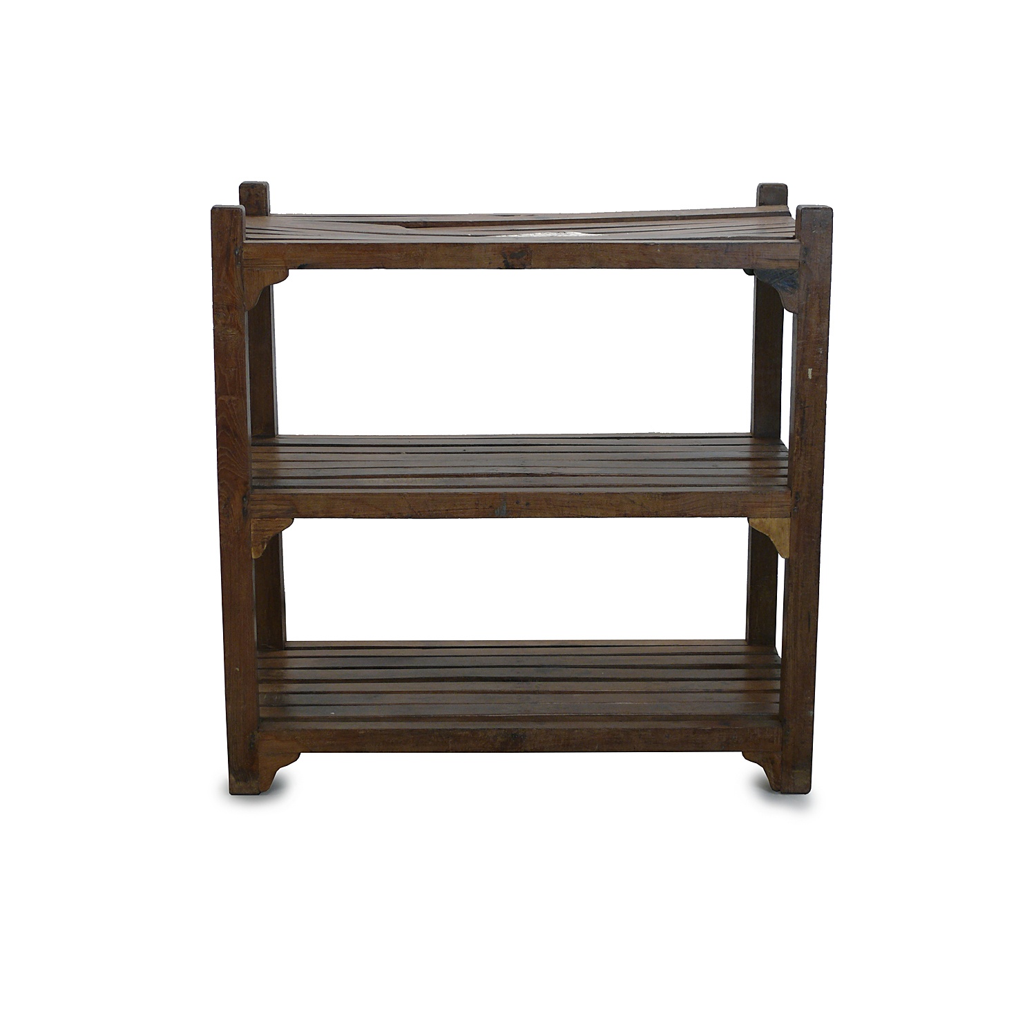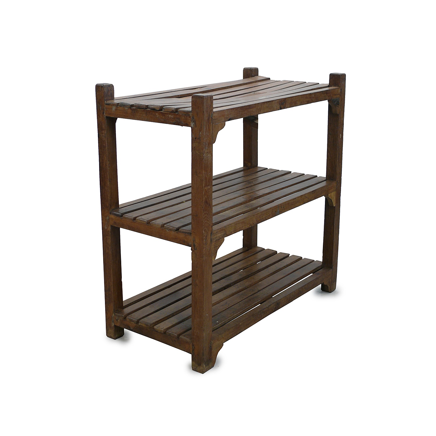 WOODEN RACK WITH THREE SHELVES 92 CM HIGH 91 CM WIDE 36 CM DEEP