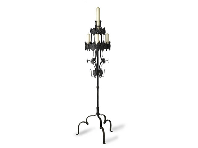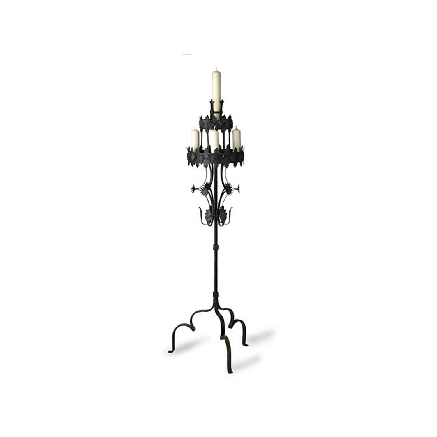 WROUGHT IRON CANDELABRA FLOOR STANDING SPANISH STAR PAT. 16TH CENT.STYLE 165 CM HIGH (X6)