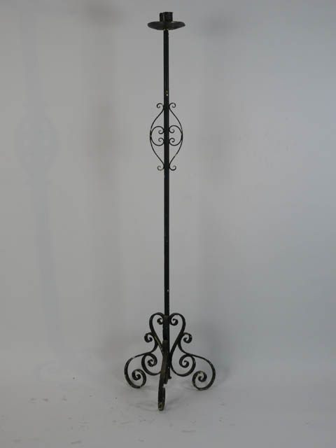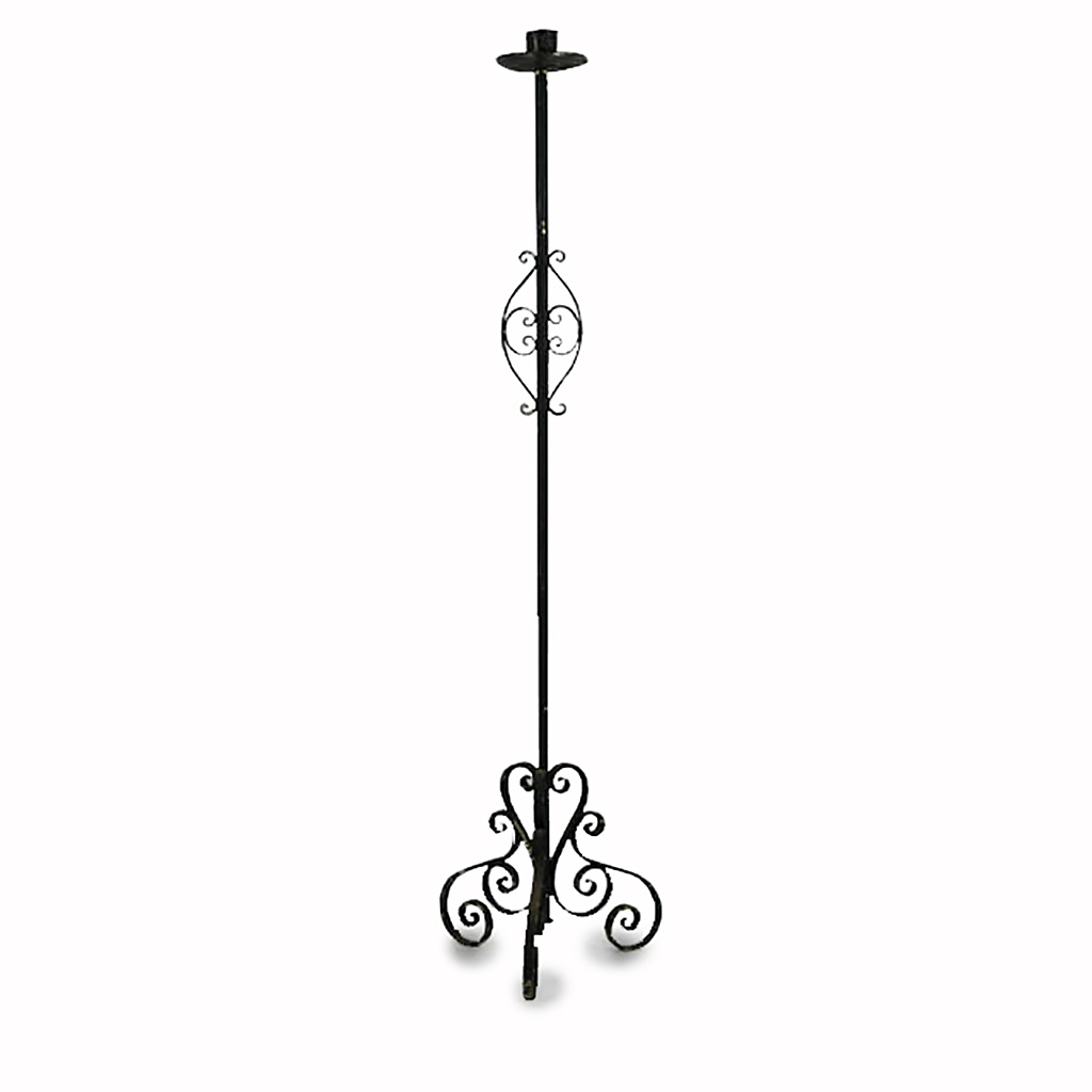 WROUGHT IRON SINGLE CANDLE HOLDER FLOOR STANDING SCROLL BASE 4'9/i HIGH